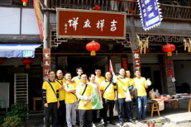出發(fā)前全員集結抽簽分為紅金隊、多潘隊、米格隊三組,講解游戲規(guī)則,推選組長。各小組在組長的帶領下參加了在古鎮(zhèn)的趣味比賽環(huán)節(jié)。完成以下三個游戲即可取得第一“通關卡”:飛奔的鴨子、古鎮(zhèn)買買買、我知,你知不知?三組隊員完成游戲“飛奔的鴨子”后,即爭先恐后穿梭于古鎮(zhèn)各處完成錦囊任務,古鎮(zhèn)因“維奧人”的到來充滿了歡聲笑語。