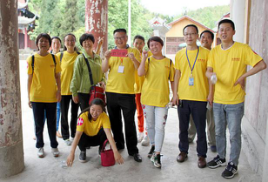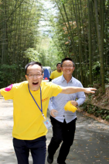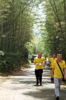 古鎮(zhèn)通關活動結束,拓展第二關---攀爬楠竹山,為增加趣味性,到達終點后還需返回到陽平觀中尋找神秘人,先行取得神秘人簽名者獲勝。隨著裁判一聲令下,3組隊員從起點出發(fā),沿盤山小徑一路向上,爭相向終點跑去。各隊組員友愛合作,互相鼓勁助威,最后多潘隊全隊率先達到終點,幾經(jīng)周折找到隱藏在陽平觀內(nèi)的神秘人,獲得本次活動的第一名。